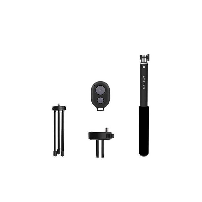 Wysuwany wysięgnik (selfie stick), statyw i kontroler bluetooth w jednym. Posiada niestandardowy uchwyt QooCam.