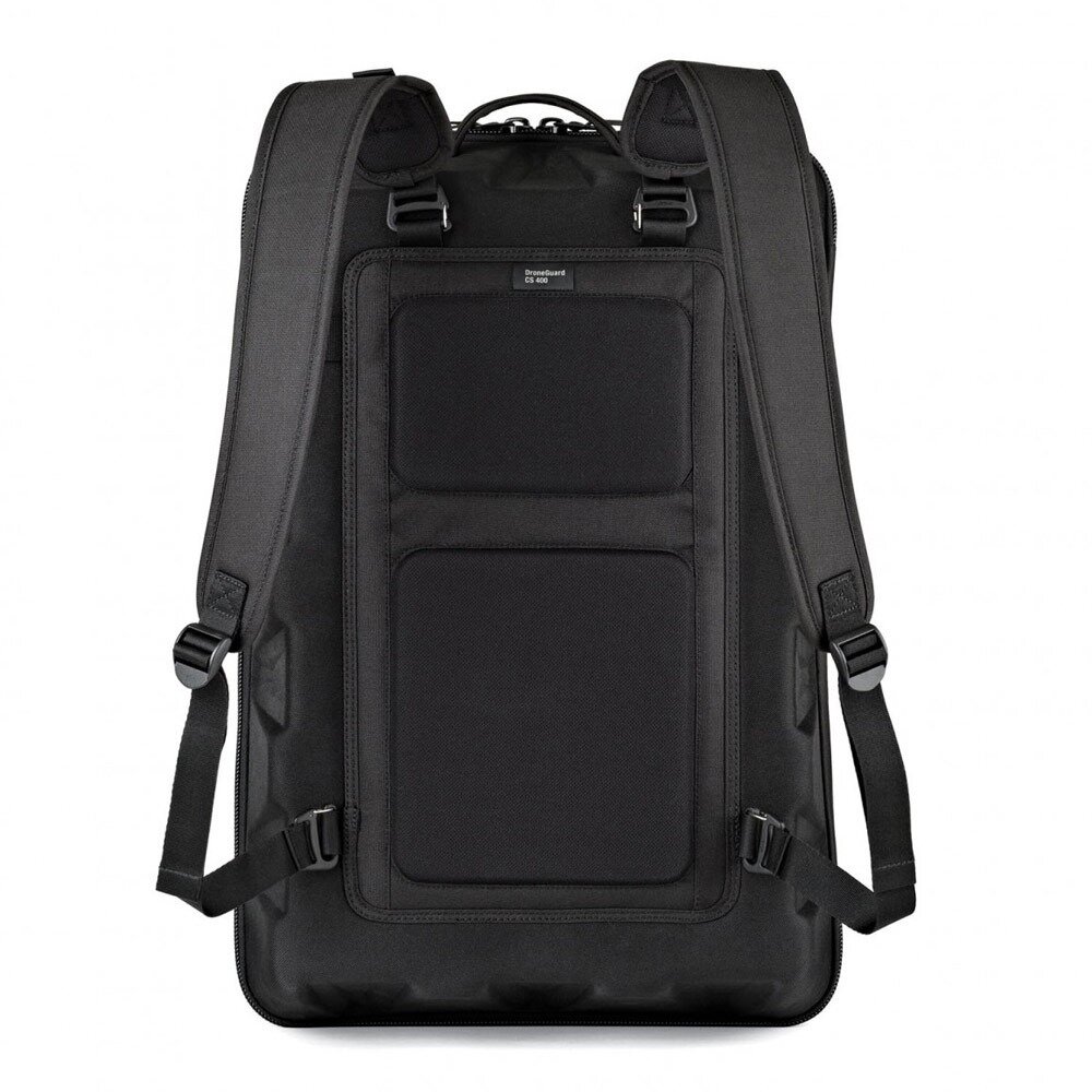CS400 to wszechstronna skrzynia zaprojektowana specjalnie dla operatorów dronów. „Skorupa” ochronna wykonana w opatentowanej przez Lowepro nowej technologii FormShell™ została stworzona pod kątem bezpiecznego transportu i wygodnego przechowywania dronów wraz z akcesoriami, skutecznie zabezpieczając wrażliwy i delikatny sprzęt elektroniczny. FormShell™ wyznacza nowe standardy wytrzymałości i bezpieczeństwa bez ujemnego wpływu na ciężar własny, Plecak waży jedynie 2.2 kg! Dzięki systemowi regulowanych przegródek wnętrze skrzyni zapewniają pełną elastyczność pozwalając na wiele wariantów konfiguracji i dopasowywanie do większości popularnych modeli dronów, posiadanego osprzętu i preferencji własnych użytkownika. Po wewnętrznej stronie klapy umieszczono przypinany rzepami panel wyposażony w zabezpieczoną zamkiem błyskawicznym kieszeń na drobne akcesoria oraz elastyczne szlufki systemu MOLLE przeznaczone na łopaty wirników, kable, itp. Odpinane paski uprzęży i wyściełana ściana pleców umożliwiają przenoszenie CS400 jako klasyczny plecak lub torbę naramienną, co ułatwi transport w terenie. Od frontu skrzynia posiada kieszeń na suwak i szlufki służące do troczenia dodatkowych akcesoriów.