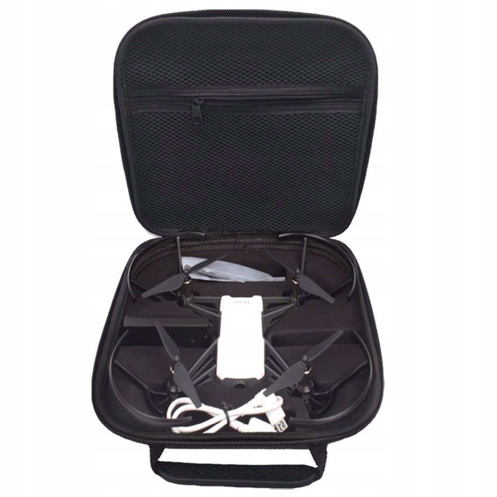 Małe poręczne etui na drona Ryze Tello DJI, wewnątrz znajduje się twarda pianka z wyciętymi otworami na drona, dodatkowo w zestawie znajduje się pasek na ramię.