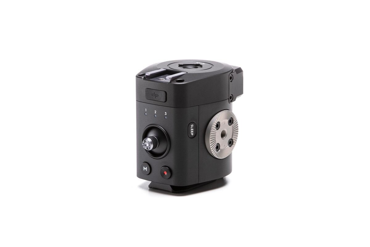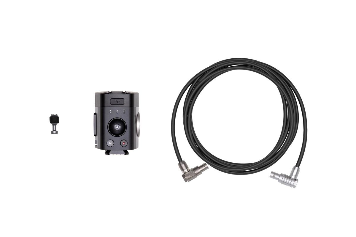 Przewodowy kontroler Ronin-S jest wyposażony w joystick, przyciski sterujące i kilka uniwersalnych portów. Można go używać z uniwersalnym uchwytem Ronin-S za pomocą kabla do zdalnego sterowania ruchem gimbala i kamerą.