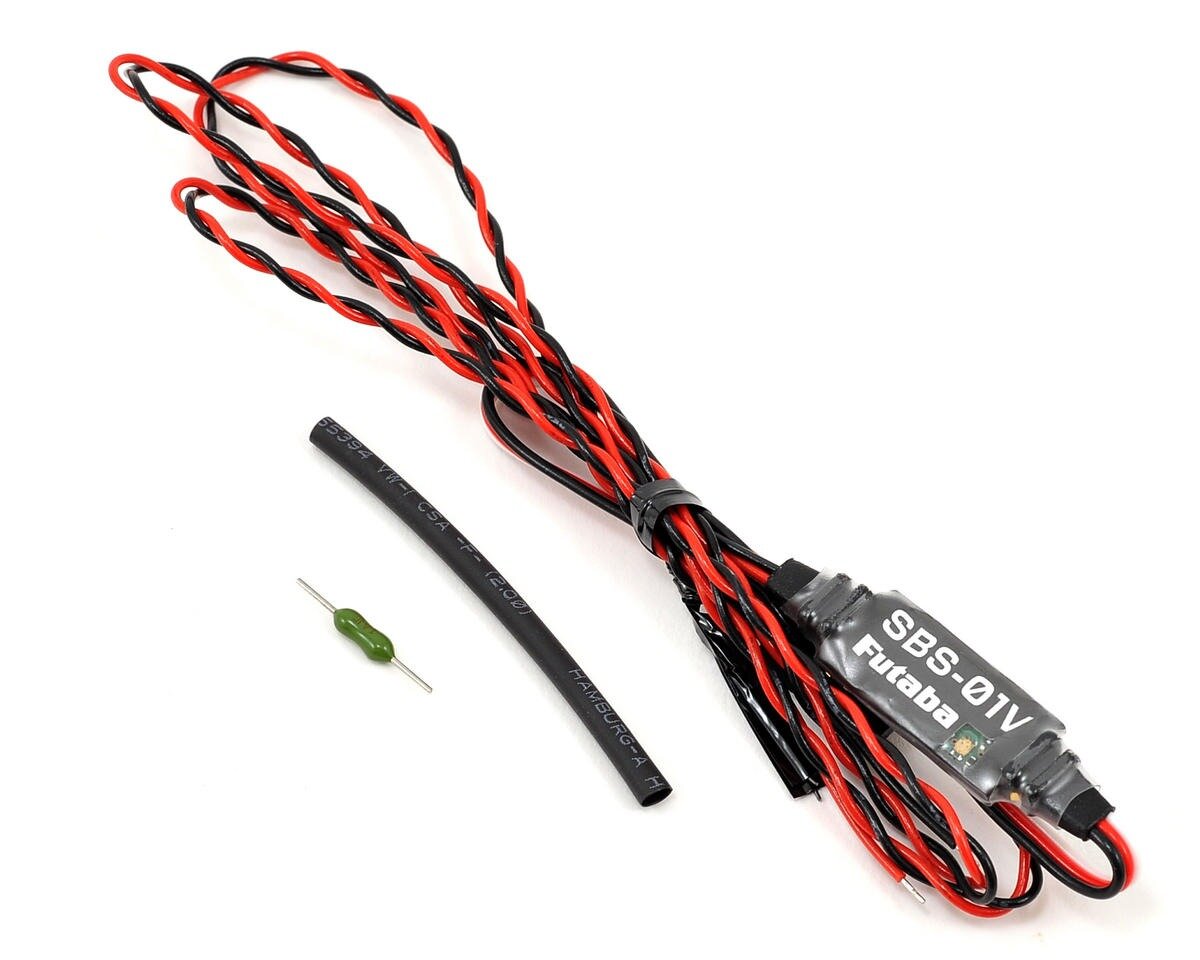 Zewnętrzny czujnik napięcia Futaba SBS-01V służy do mierzenia napięcia akumulatora napędowego. Czujnik mierzy napięcie w zakresie 0 do 100V, podłącza się do szyny S.BUS2. W zestawie również zabezpieczenie nadprądowe z koszulką termokurczliwą.