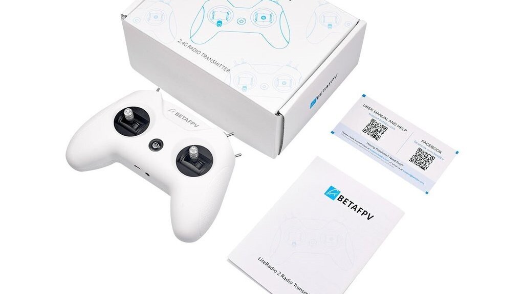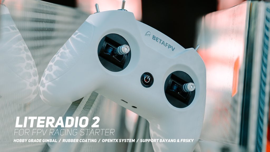 LiteRadio 2 to 8 kanałowy nadajnik radiowy 2.4GHz obsługujący protokoły FrSky D8, D16 FCC i D16 LBT. Zasilany jest akumulatorem 2S 350mAh. Ładowanie za pośrednictwem portu USB w pilocie. Wspiera możliwość podłączenia do symulatora lotu.