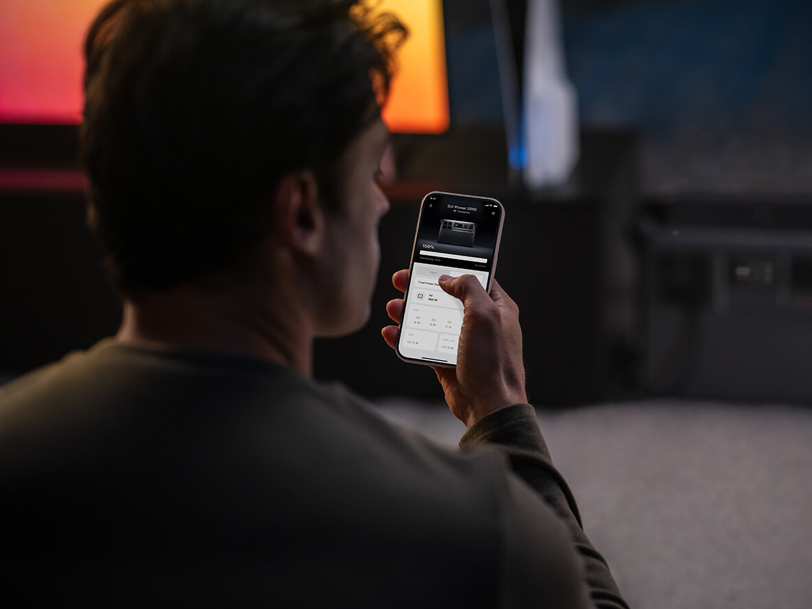 Z poziomu aplikacji DJI Home sterujesz stacją, gdziekolwiek jesteś. Możesz włączać i wyłączać wyjścia AC, sprawdzać status zasilania i kontrolować ustawienia dodatkowych akumulatorów oraz ładowarek. Interfejs jest prosty i przejrzysty – zarządzanie energią staje się wygodne jak nigdy dotąd.