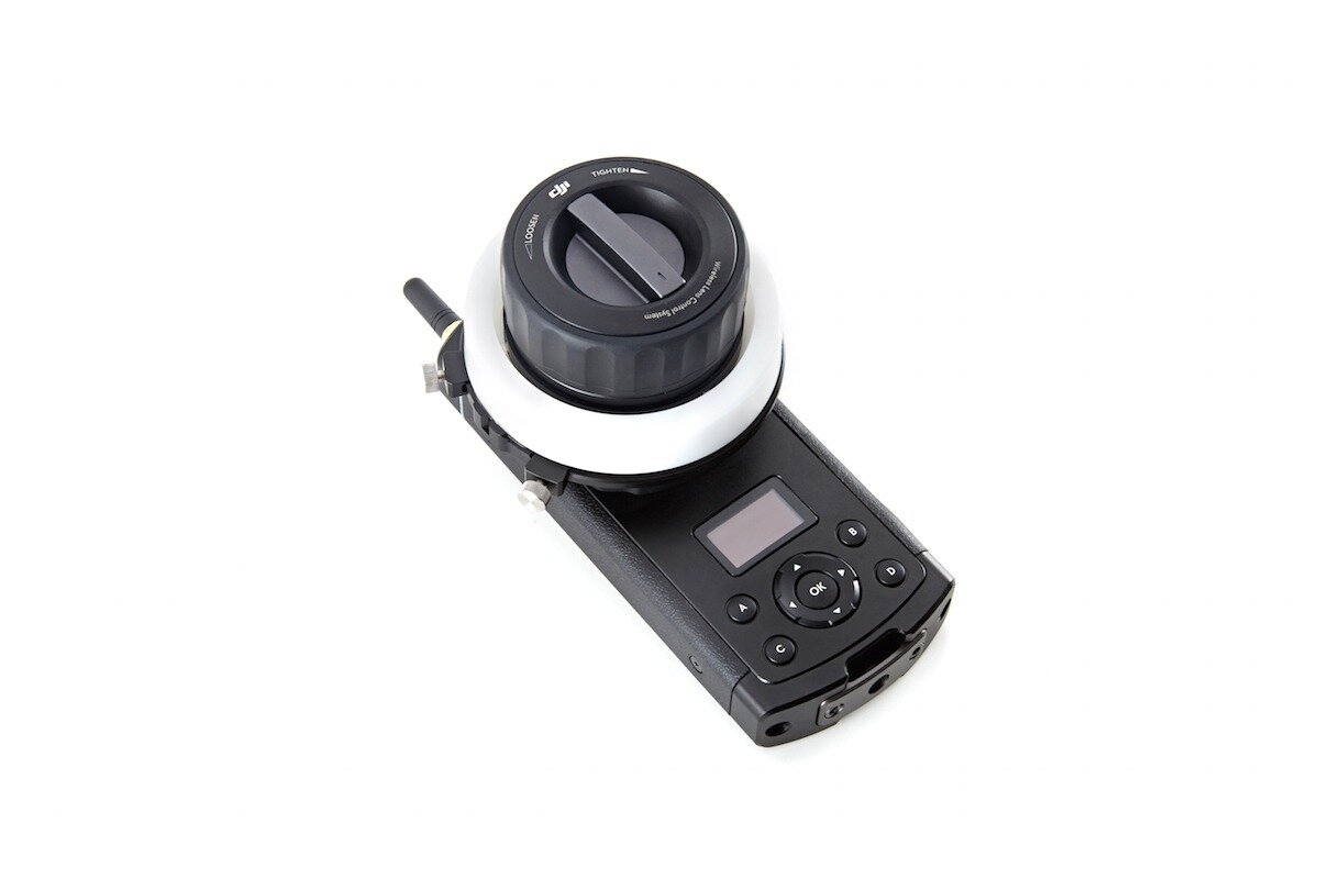 DJI Focus jest to urządzenie pozwalające na bezprzewodową regulację ostrości obiektywu z dokładnością do ± 0,02°. Kompatybilny jest z gimbalami DJI Zenmuse X5 i X5R.