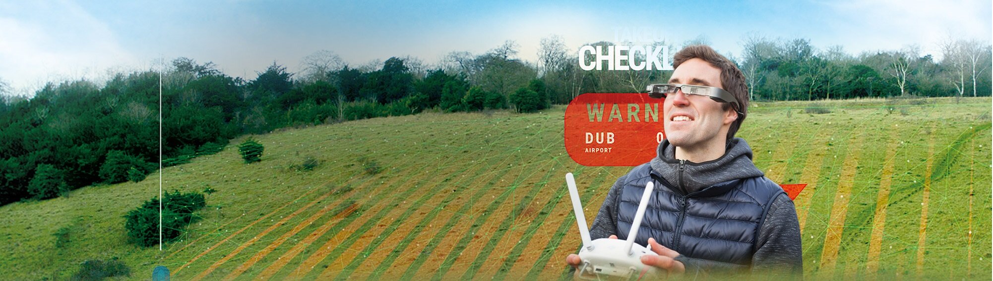 Przezroczysty wyświetlacz pozwala na oglądanie materiału wideo z drona w czasie rzeczywistym i na podgląd kluczowych danych telemetrycznych przy utrzymaniu drona w polu widzenia.