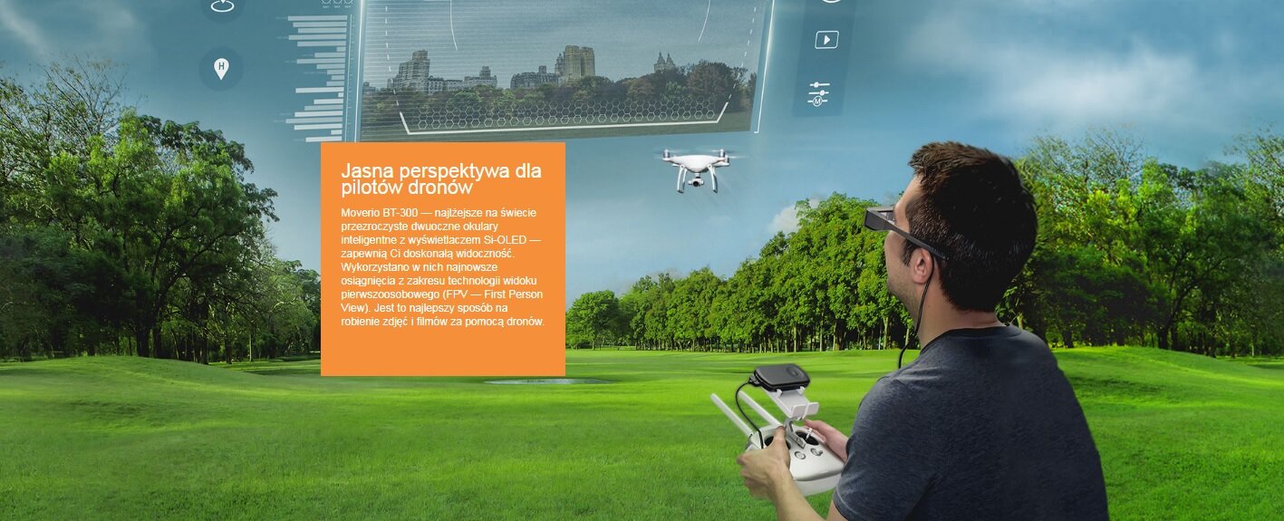 Zmień sposób patrzenia na świat z perspektywy drona dzięki Moverio BT-300, najlżejszym na świecie przezroczystym dwuocznym okularom inteligentnym wykorzystującym technologię Si-OLED¹