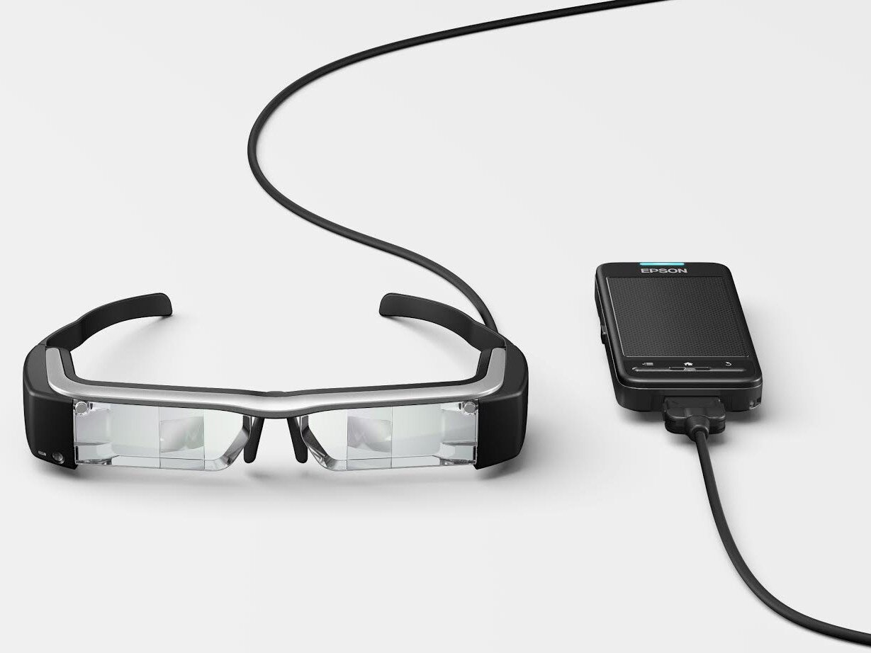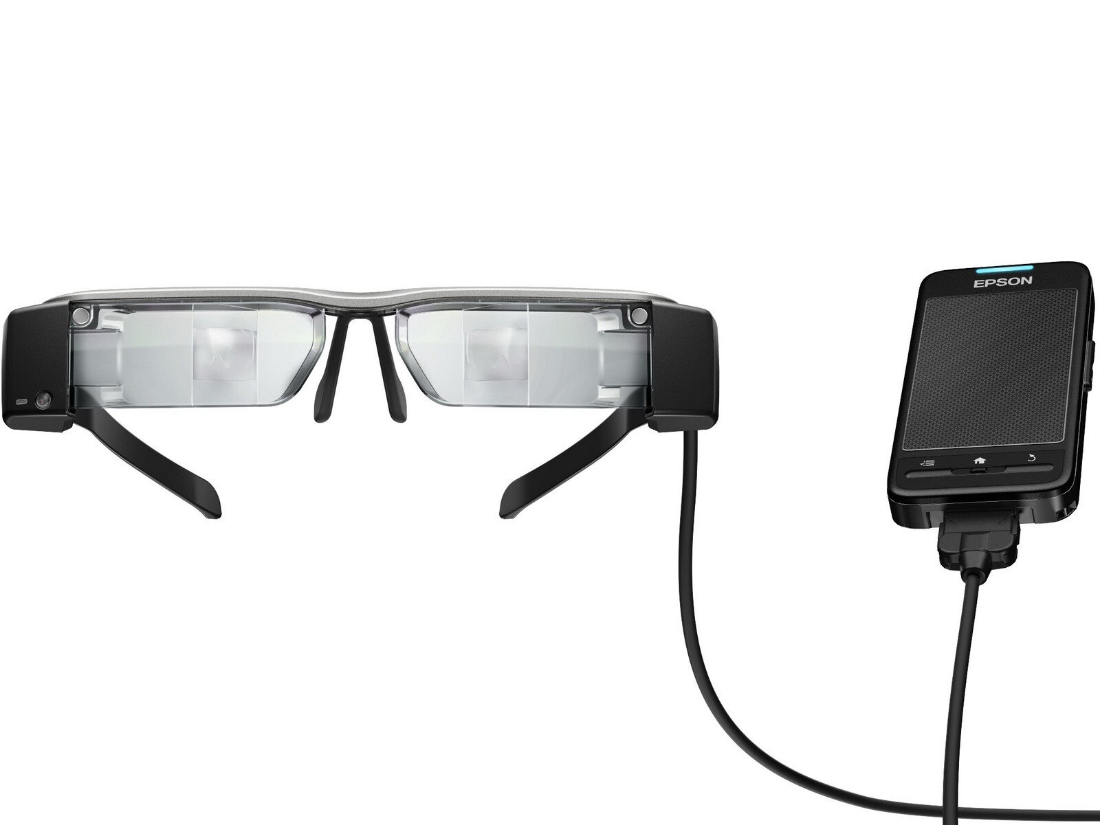 Obuoczne okulary Moverio BT-200 wyposażone w przezroczysty wyświetlacz i duży ekran, umieszczony centralnie w polu widzenia, pozwalają w pełni wykorzystać możliwości rzeczywistości rozszerzonej i obsługi bez użycia rąk.