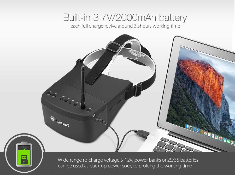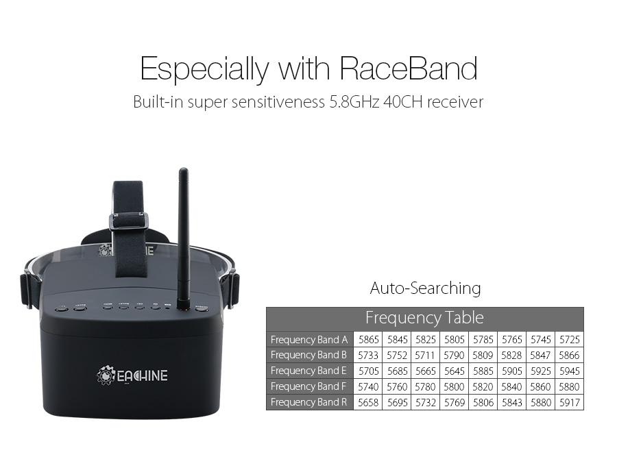 Eachine EV800 5 Inches 800x480 FPV Goggles 5.8G 40CH Raceband Auto-Searching Build In Battery