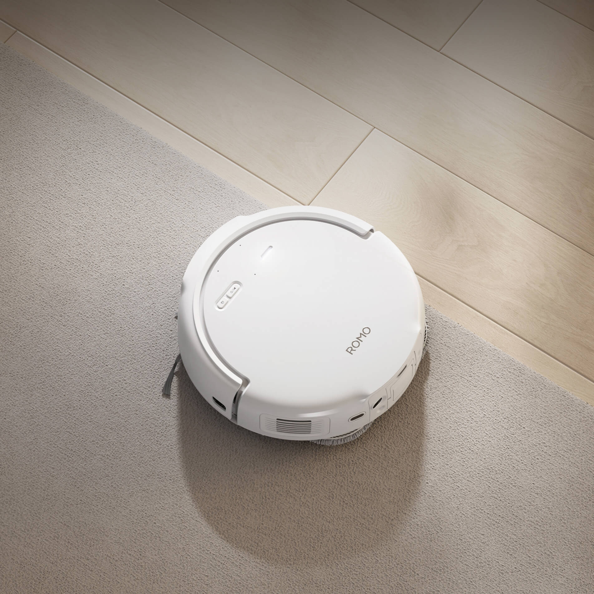 Minimalistyczna forma i klasyczna biała obudowa sprawiają, że DJI ROMO S naturalnie wpasowuje się w każde wnętrze – od przestronnych loftów po mniejsze mieszkania.