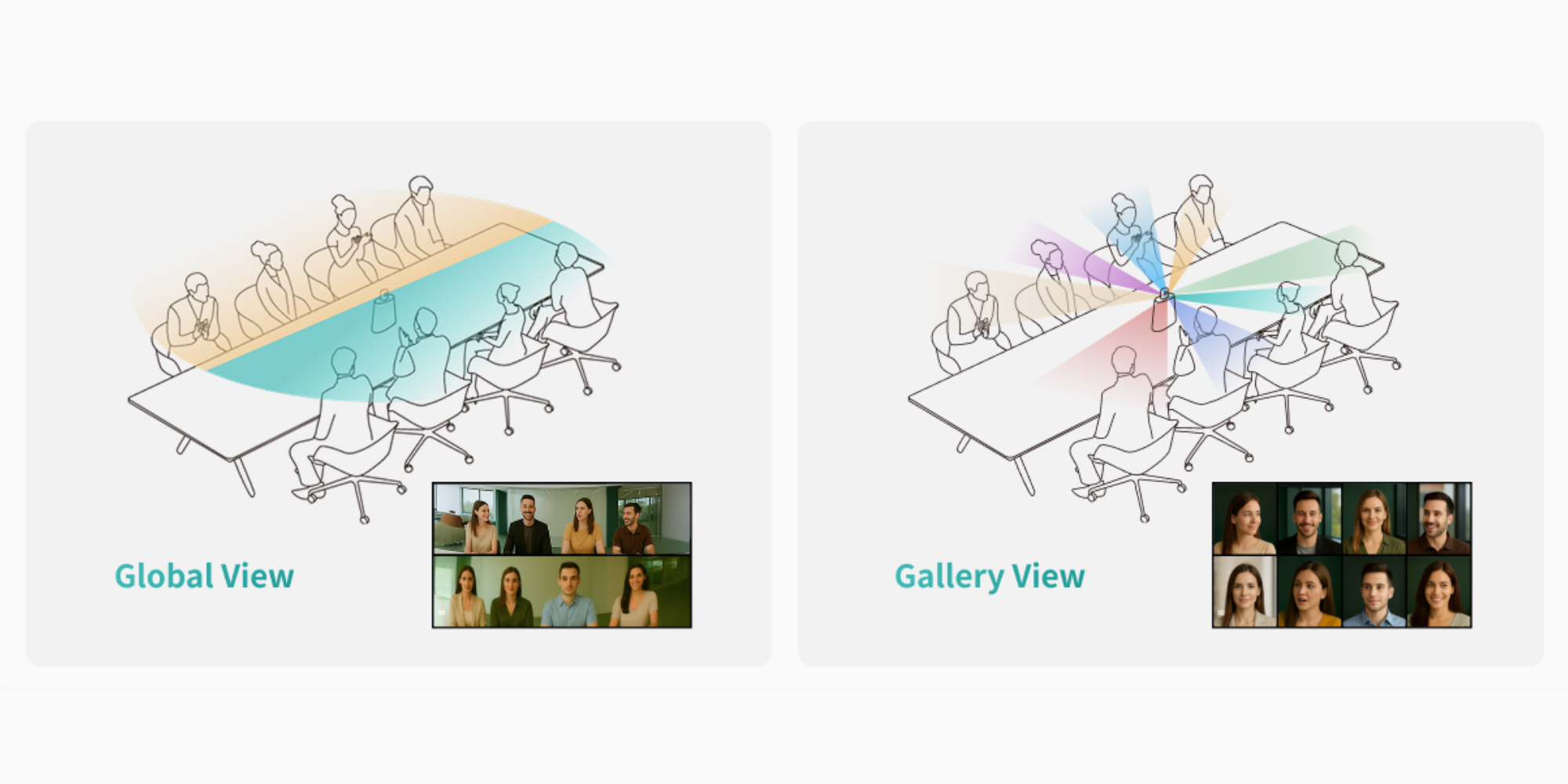 Global View – dwie panoramy 180° tworzone przez obiektywy 195° pokazują wszystkich uczestników przy minimalnych zniekształceniach obrazu.