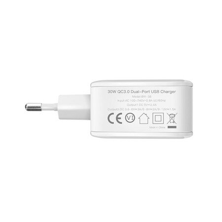 Ładowarka o mocy 30W pozwalająca na szybkie ładowanie 2 urządzeń jednocześnie. Wykrywa urządzenia i zapewnia szybkie i bezpieczne ładowanie.