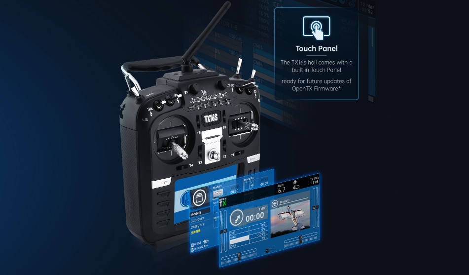 Nadajnik TX16S to świetne połączanie dobrej jakości z jeszcze lepszą ceną. Ta 16-kanałowa aparatura wyposażona jest w gimbale Halla, co znacznie zwiększa precyzję sterowania. Oprócz tego, produkt jest wyposażony w standardowe wejście na karty microSD oraz port USB typu C. Takie rozwiązanie sprawia, że nie jest konieczne wyjmowanie akumulatora w celu jego naładowania. W tej wersji nadajnik jest wyposażony w dotykowy wyświetlacz o dużej rozdzielczości oraz dwa porty UART, dzięki którym można aktualizować software aparatury.