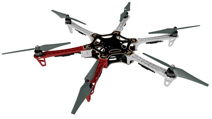 Zestaw RC hexacopter z 6 silnikami bezszczotkowymi 2312-960KV i regulatorami 20A. Centralna płyta kompozytowa oraz ramiona zbudowane z tworzywa sztucznego wypełnione włóknem szklanym. Rozpiętość 550mm, masa własna 478g, masa z obciążeniem od 1200g do 2400g.