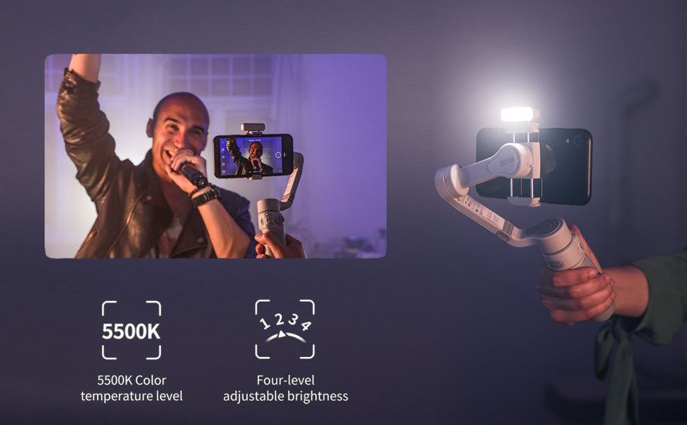 Smooth Q4 jest również wyposażony w dwustronną, mocną magnetyczną lampę wypełniającą o temperaturze 5500K z czterema poziomami regulacji jasności. Światło jest niezwykle przydatne podczas filmowania w ciemnym otoczeniu lub po prostu, gdy chcesz dodatkowo oświetlić swój film.